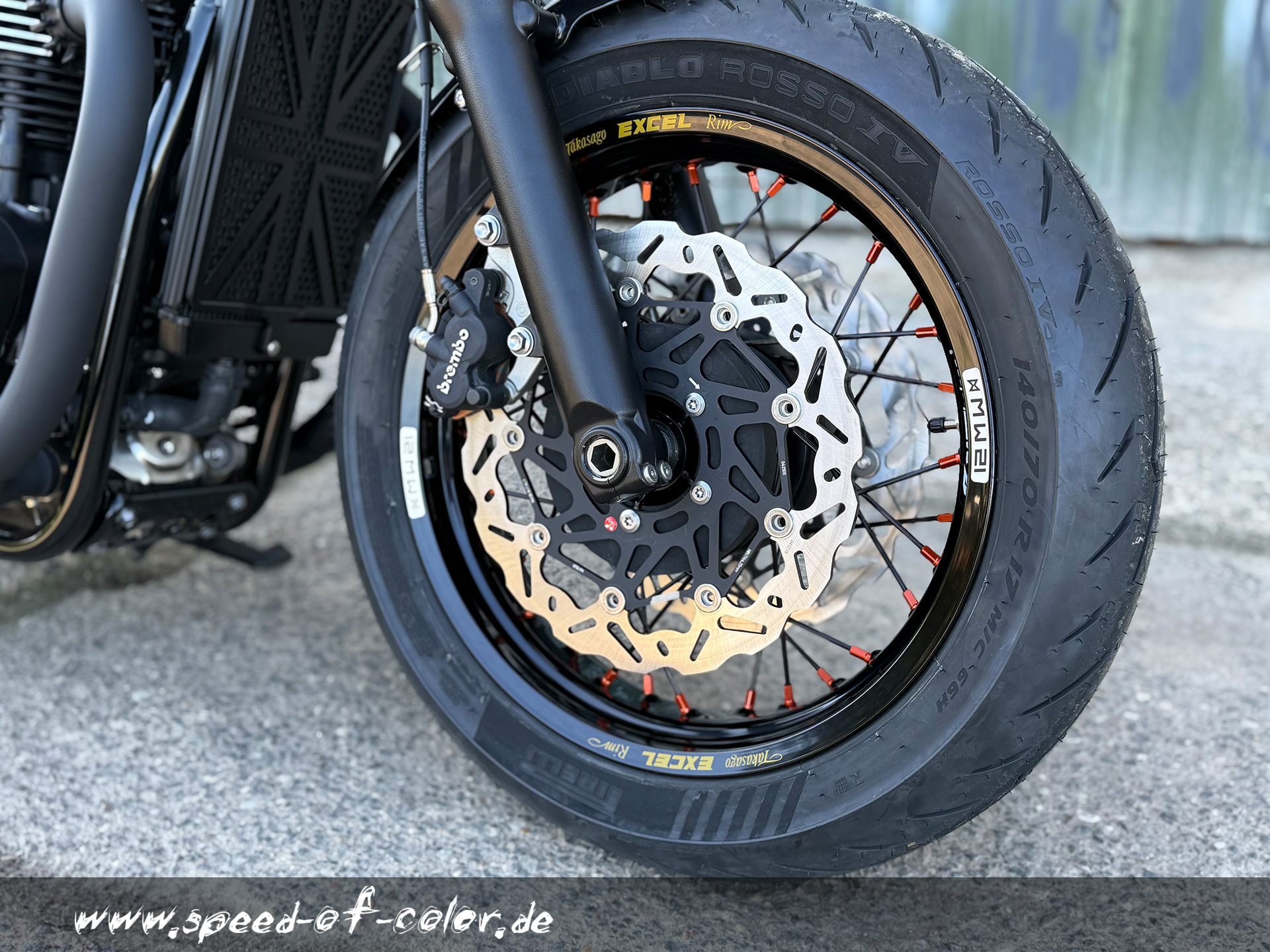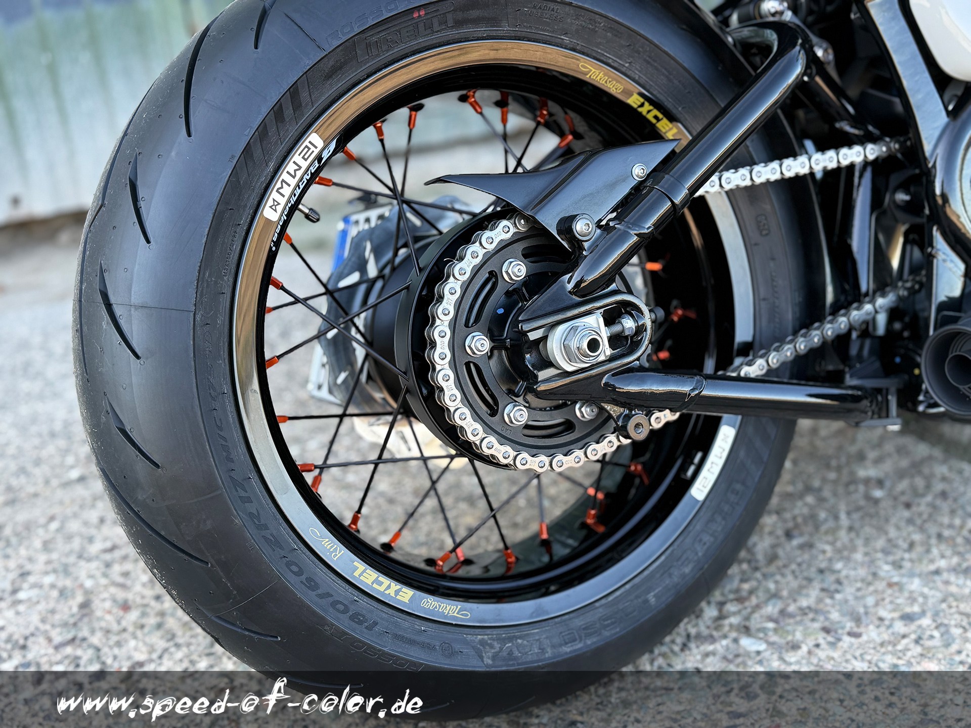 Es sind keine Umbaumaßnahme erforderlich. Es können die originalen Bremsscheiben und Kettenrad weiter verwendet werden.Felegen, Speichen und Nippel sind in verschienden Farben lieferbar. (auch hier sind Sonderfarben möglich)
