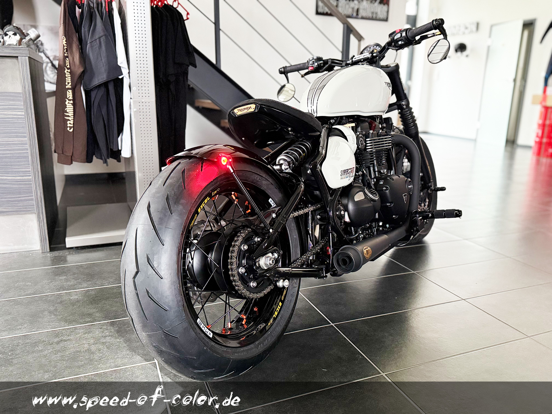 Triumph Bobber Kotflügel fürs Hinterrad inkl. Blinker/ Rücklicht Kombi von Wunderkind Custom.Passend für die Bobber Modelle 2017 bis heute. Genaues Modell bitte bei Bestellung mit angeben.